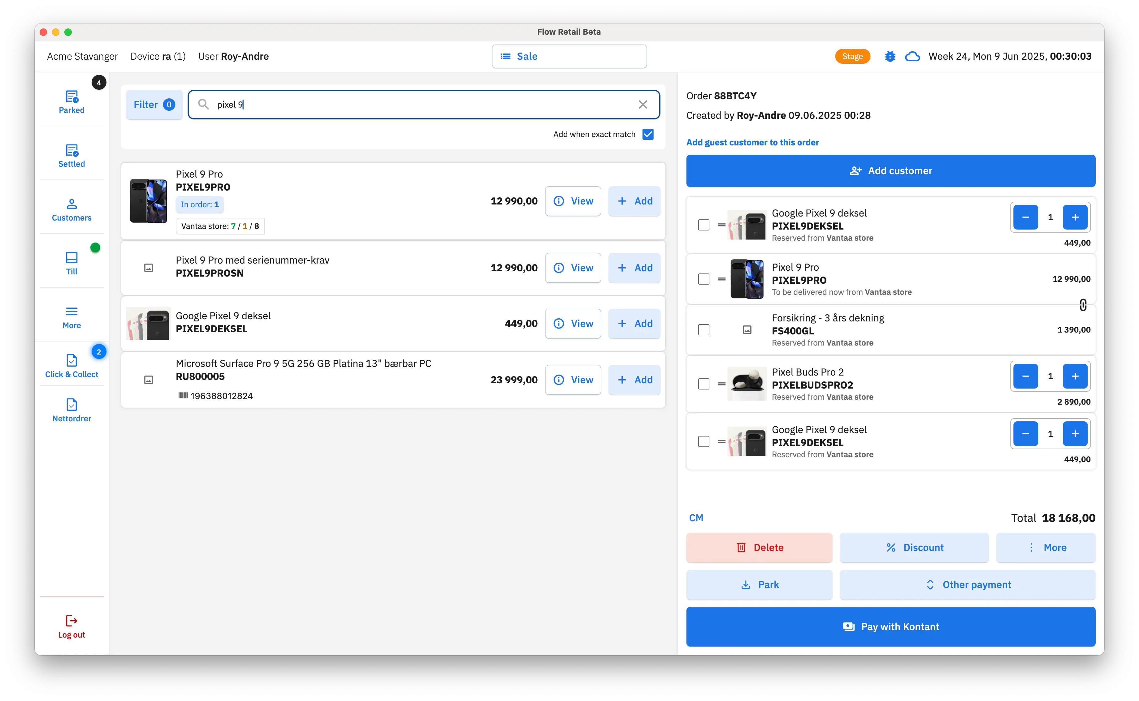 Flow Retail makes it easy to complete sales — whether it’s a quick checkout, complex order, or something in between. Every function is designed for speed, clarity, and real-life retail.